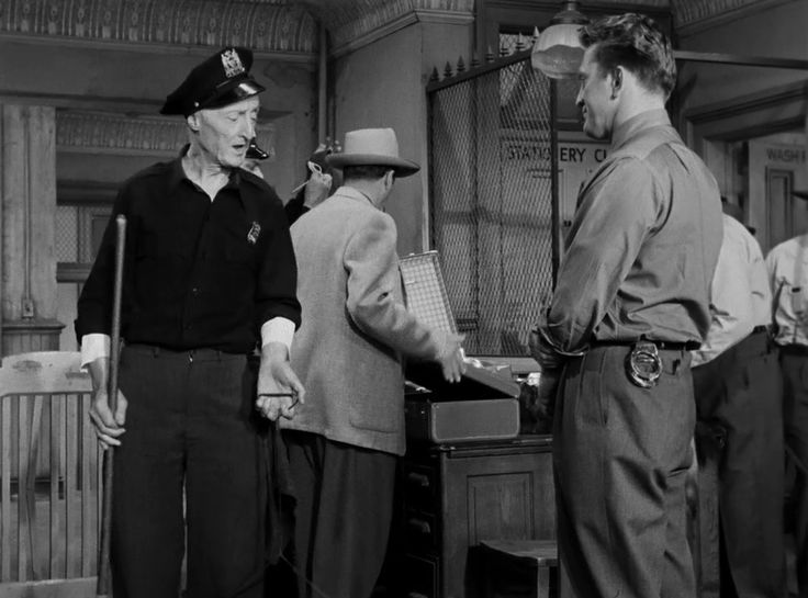 041_Burt_MustinIn 1951, Mustin was performing in a cameo role as “Willie,” the janitor, in Detective Story starring Kirk Douglas at the Sombrero Theater in Phoenix, Arizona. One night, William Wyler, a noted director, attended the play and was very impressed with Mustin’s performance as “Willie.” Wyler cast Mustin as “Willie” in Detective Story, together with fellow actor Kirk Douglas in the lead-role. Throughout his theatrical career, which spanned more than four decades, Mustin became a well known character actor who was noted for his dependability and versatility. Mustin appeared in more than 150 films and more than 400 television-productions, including roles as “Jud Crowley,” the barber shop patron, on The Andy Griffith Show, as “Gus,” the fireman, on Leave It To Beaver and as “The World’s Oldest Cat-Burglar” on Dragnet. He was a semi-frequent guest-star on the Dragnet television-series, both in the 1950’s and 1960’s, because he was a personal-friend of Jack Webb, the creator, director and producer of Dragnet. Mustin honored his alma mater by reprising his original (1951) film role as “Willie,” the janitor, in the theatre pmc student production of Detective Story in February 1970. Mustin’s campus visit was arranged by Cadet John E. N. Blair ’70, theatre pmc General Manager, who presented Mustin with a theatre pmc plaque and gray cadet-sweater following thunderous applause at the conclusion of the Opening Night performance of Detective Story, which was attended by numerous local dignitaries, including President and Mrs. Clarence R. Moll.