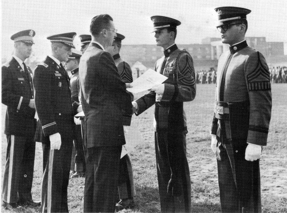 Inspectors were known to give an individual a merit or demerit for specific element of the inspection, such as hanging uniforms improperly. If a Rook accumulated enough demerits, they would find themselves marching Penalty Tours on the blacktop between Old Main and Memorial Stadium just below the Commandant’s Office.