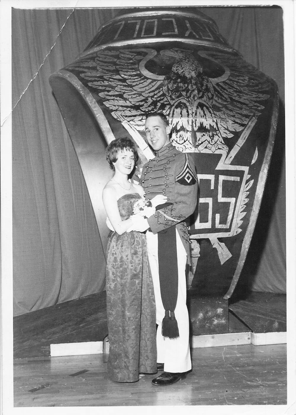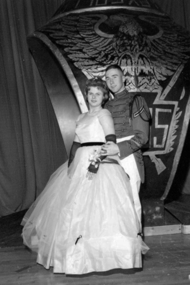 The Hyatt Armory was always beautifully decorated for what many considered to be a social highlight of the year. Upon entering the armory, Juniors were received by the College President, Commandant of Cadets and members of the military staff. Although the armory was always decorated, the center of attention was the nine-foot high replica of the PMC ring. As the name of each cadet and his date were called, they walked through the ring. Here the cadet had his own ring placed on his finger by his date. After receiving his ring, and a kiss, the couple walked through an arch of drawn sabres held by Seniors..